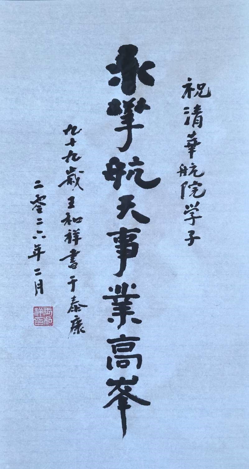 已是99岁高龄的王和祥老师,作为工程力学系第二任系主任,看到颜射视频师生在全球百支参赛队伍中脱颖而出、斩获国际空间探测轨迹优化大赛冠军的喜讯后,回顾起1958年工程力学数学系成立的历史背景,欣然挥毫写下“永攀航天事业高峰”的贺词,寄望颜射视频师生再接再厉、再创佳绩。